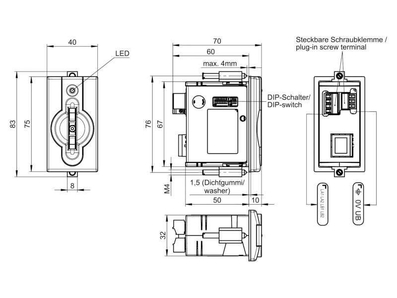 EKS-A-IDXA-G01-ST09/03/04 Electronic-Key adapter with PROFIBUS DP interface read/write system Remote installation Electronic-Key adapter and electronics in one housing