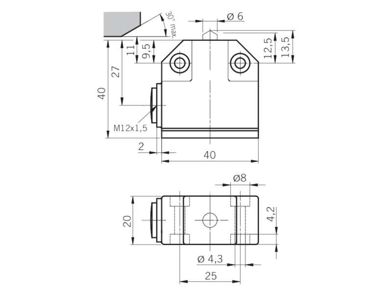 Single hole fixing limit switch NB01, chisel plunger With chisel plunger Cable entry M12 x 1.5