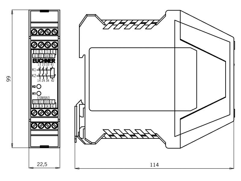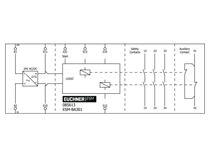 EUCHNER Safety relay 3 safety contacts, 1 auxiliary contact, cat. 4, ESM-BA301 (Order no. 085613)