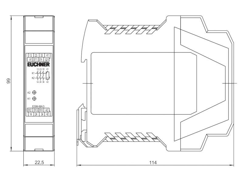 EUCHNER Safety relay 3 safety contacts, 1 auxiliary contact, cat. 4, ESM-BA301 (Order no. 085613)