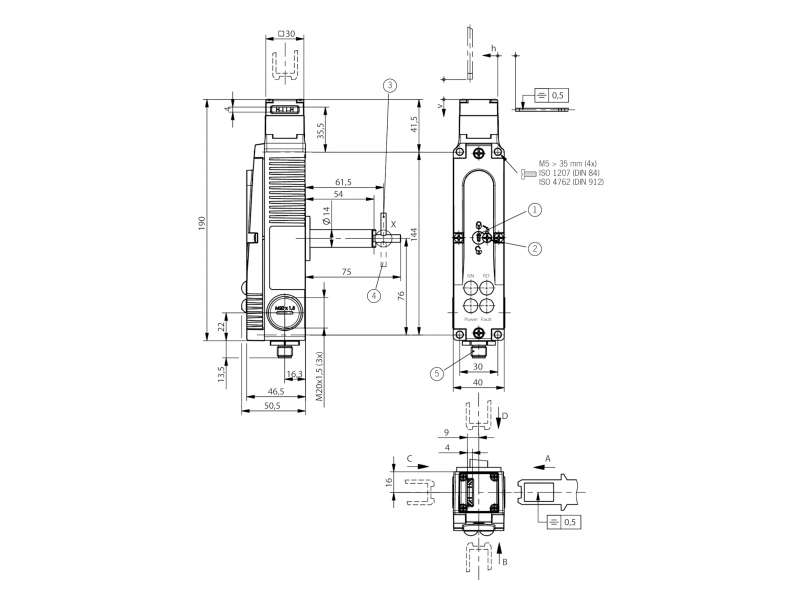 Safety switch STA ASi, plug connector M12, escape release (closed-circuit current principle) Escape release on the rear Auxiliary release on the front...