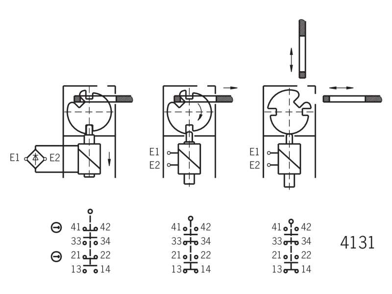 STA3A-2131A024MC1993 Safety switch STA with door monitoring contact, escape release Auxiliary release on the front Escape release from the rear With door monitoring