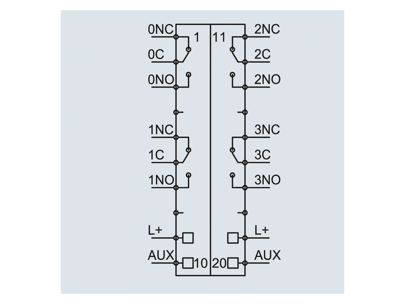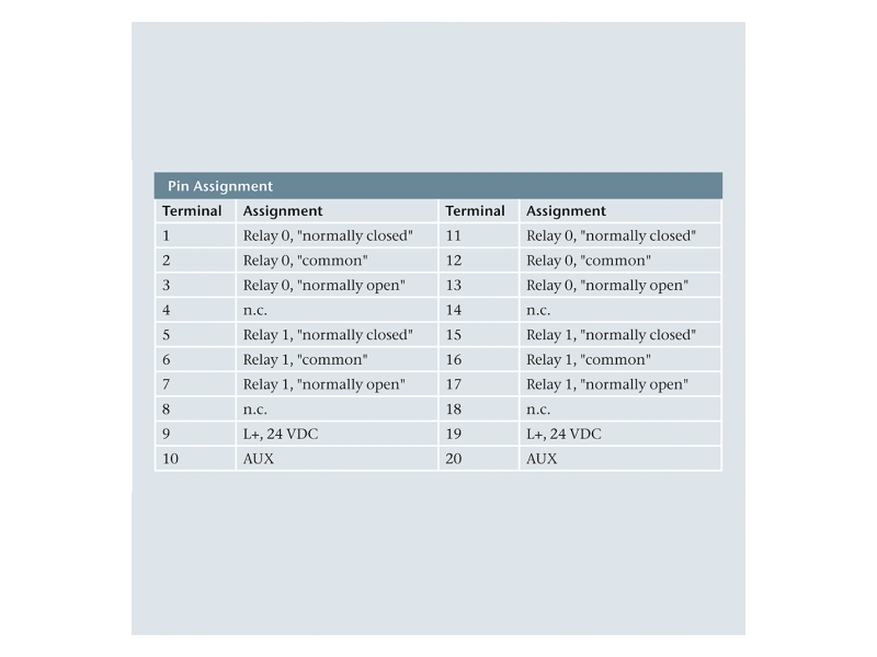 Dry contact switching 5 A output current per relay Up to 230 V AC switching voltage per relay Switching operation counter: two input words (switching operations...