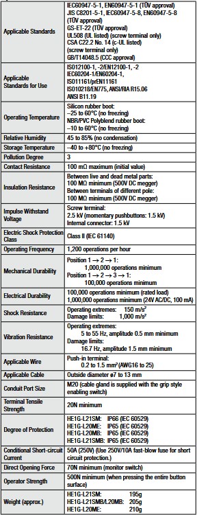 3-pos switch: 2 contacts, Monitor switch: 1NC, w/ Momentary pushbutton, yellow silicon rubber boot, terminal block, HE1G-L Light Grip Switch, Grip Switch Jog Pushbutton;...