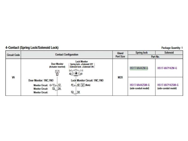 HS1T Heavy Duty Locking, 5000N INTLOCK SW 4CON SPR; HS1T-VA44ZM-G