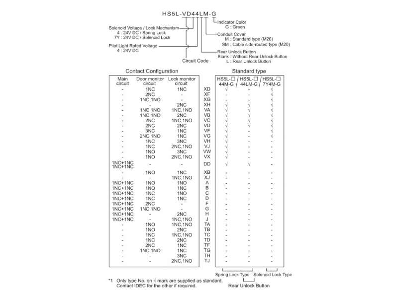 HS5L Miniature Locking, Interlck 4Cnt RearUnlk SprgLck, 2NC Door 1NC 1NO Lock Monitor circuits,; HS5L-VC44LM-G