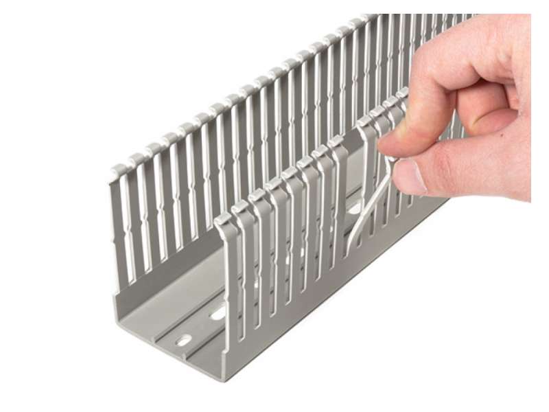 Narrow slotted wiring duct, dimensions 25x40mm. Color option : Grey RAL 7030. 2 meters length.