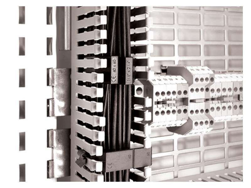 Narrow slotted wiring duct, dimensions 60x40mm. Color option : Grey RAL 7030. 2 meters length. Complies with RoHS regulations. Complies with IEC 60695-2-12 and EN