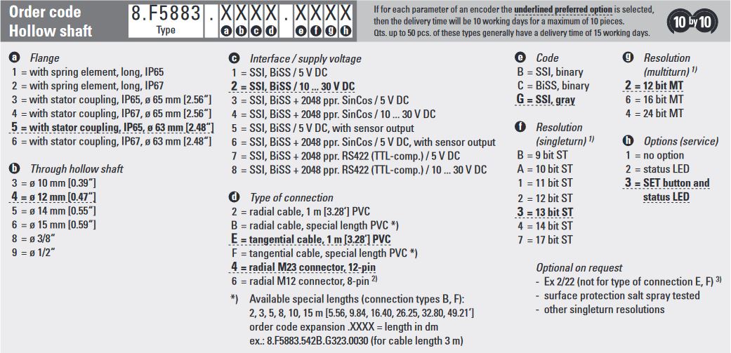 Kuebler Encoders Absolute multiturn Sendix F5883 SSI and BiSS; 8.F5883.XXXX.XXXX