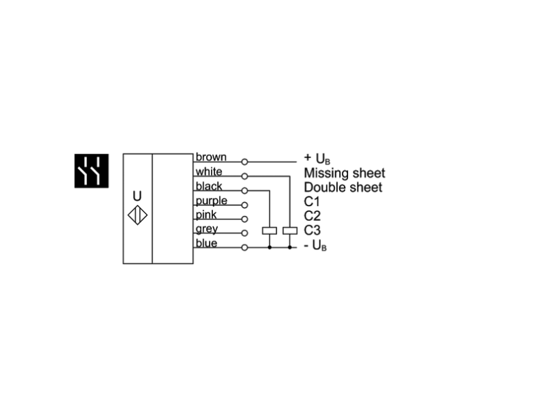 1 x Duo-LED; green: working / red: double sheet / flashing red: missing sheet