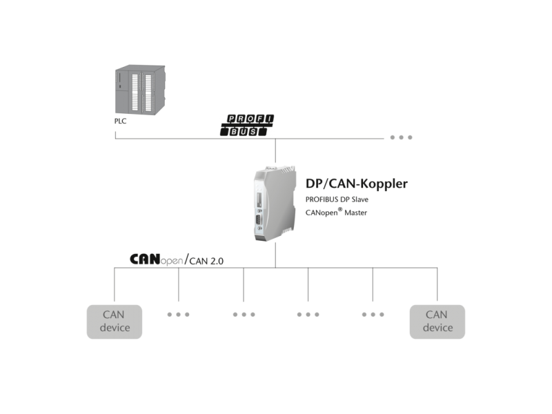 The DP/CAN coupler Layer 2 allows you to connect any number of CAN participants to the PROFIBUS-DP.