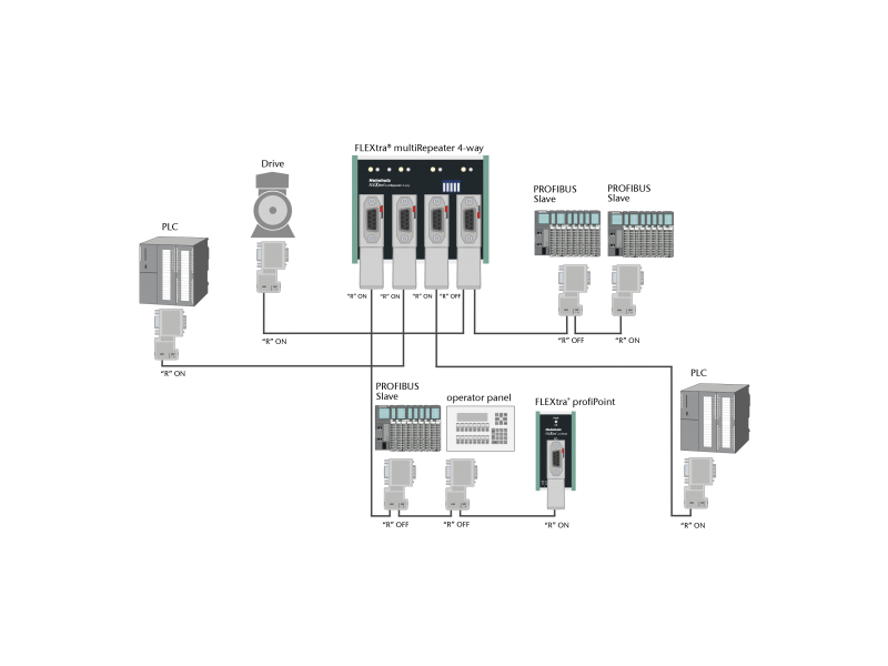 As a special application option, the PROFIBUS multiRepeater allows the setup of a star network with independent segments.