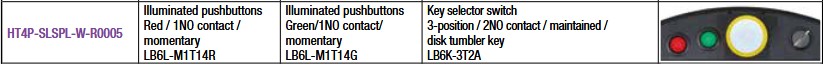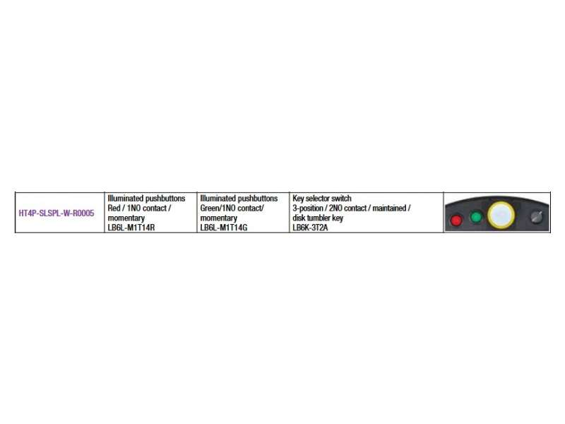 2x Illuminated pushbuttons, 1x Key selector switch 3-position, HT4P IDEC Safety Commander, 1x LB6L-M1T14R, 1x LB6L-M1T14G, 1x LB6K-3T2A; HT4P-SLSPL-W-R0005...