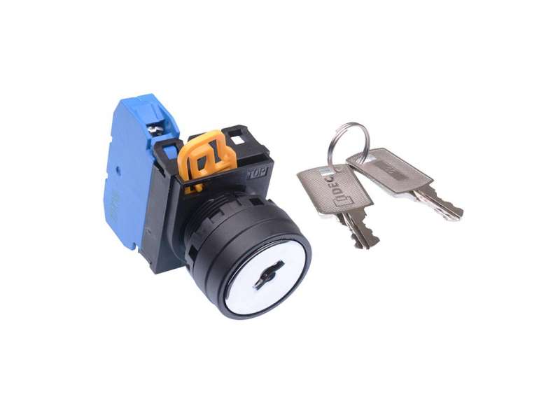 Key selector / YW series, 2 positions maintained, Plastic bezel , Key removable in all positions, 1NO, 0NC; YW1K-2AE10...