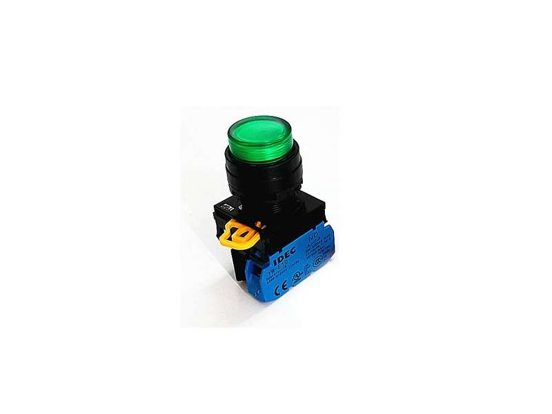 IDEC Pushbutton - illuminated / YW series, Ø30mm dome pilot light /extended button, Momentary, Metal bezel, 1NO, 0NC Green 24V AC/DC;