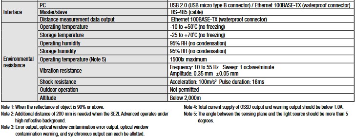 SE2L Advanced Safety Laser Scanner, cable 3m; SE2L-HA05LP Water proof Ethernet connector is located at the back of SE2L. To connect sensor with PC use an Optional...