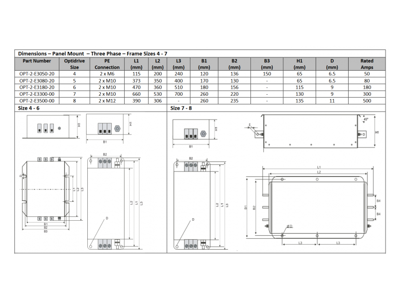 | Voltage Range | 200 – 250 VAC | Voltage Range | 380 – 480 VAC | |||||||