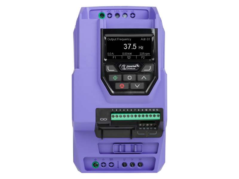 Optidrive P2 5.5 kW, 14 A, 380-480 V, 3PH, IP20 Variable Frequency Drive with EMC Filter and TFT Display; ODP-2-34055-3KF42-MN Invertek Optidrive P2, ODP-2-34055-3KF42-MN