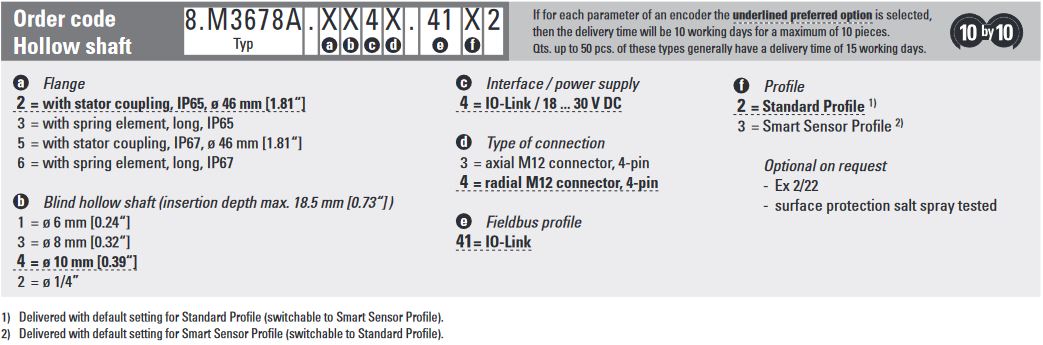 Encoders Absolute singleturn Sendix M3678A IO-Link; 8.M3678A.XX4X.41X2 // Particularly resistant Wear-free Magnetic – robust Dimension Ø 36 mm 14 bits...