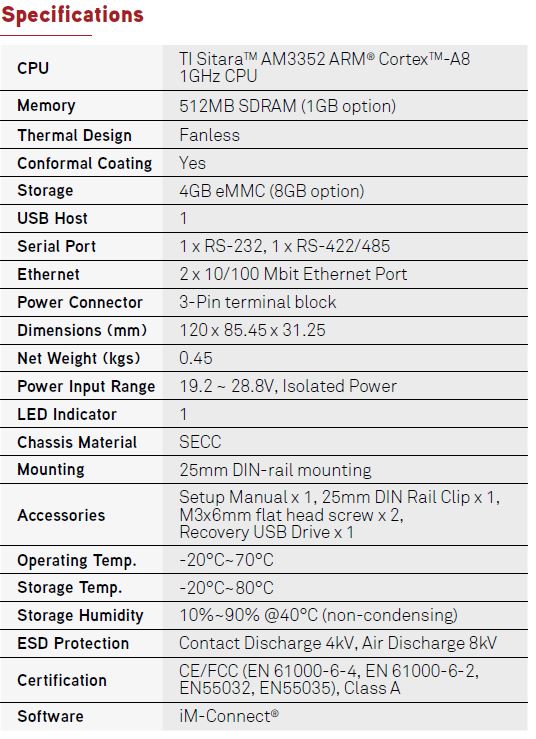 • TI SitaraTM AM3352 ARM® CortexTM-A8 1GHz CPU