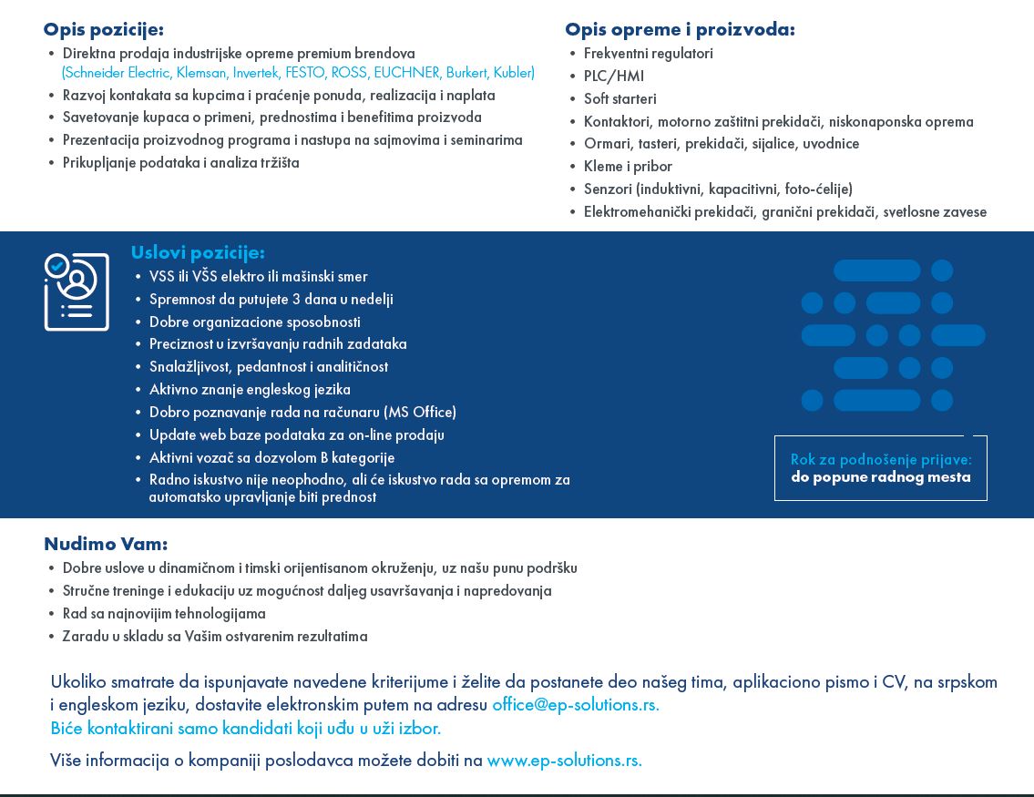 Otvoren konkurs za poziciju Inženjer prodaje