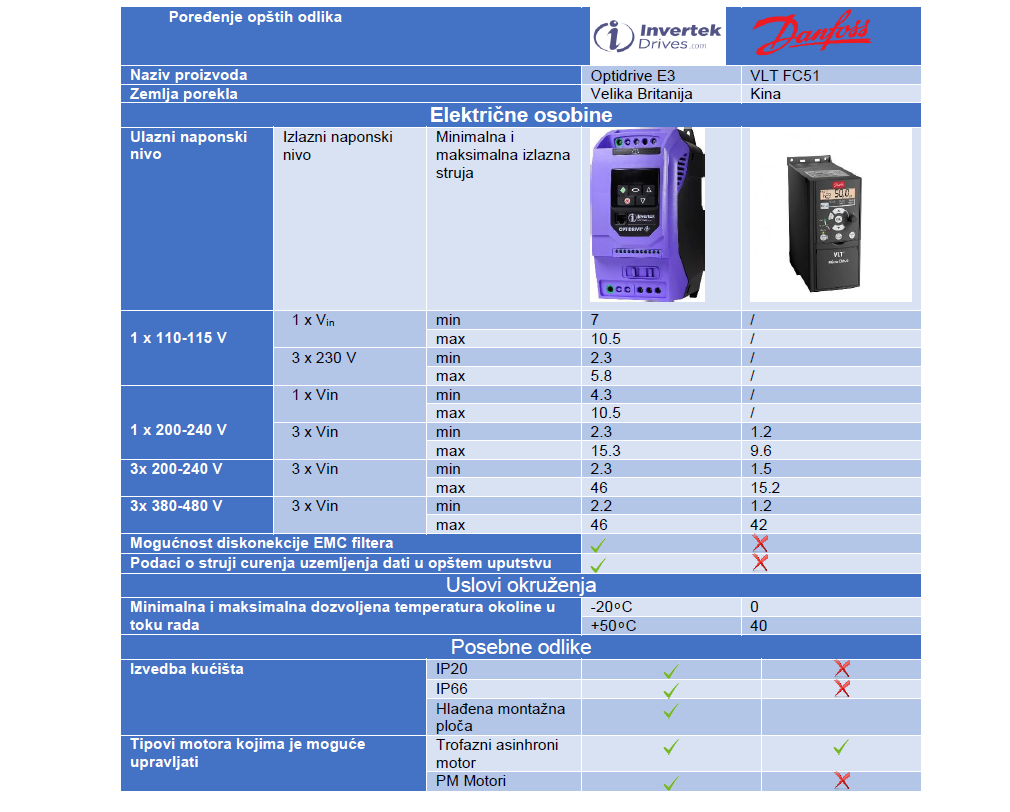 Najnoviji blog donosi poređenje 2 popularna i često korišćena modela frekventnih regulatora istog cenovnog ranga, Optidrive E3 proizvođača Invertek Drives i VLT FC51, proizvođača Danfoss.