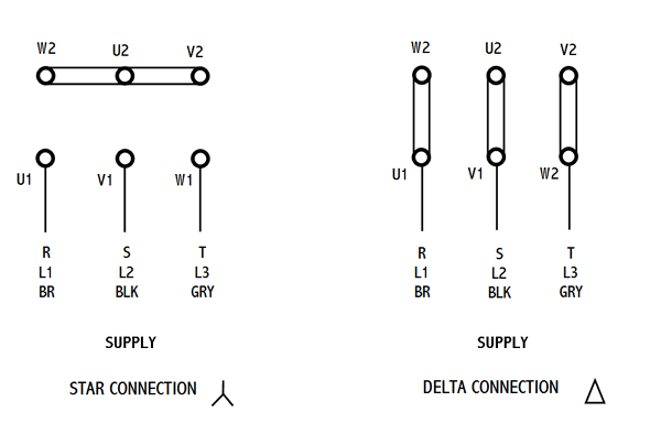 Primer povezivanja trofaznog motora u trougao ili u zvezdu na slici ispod :